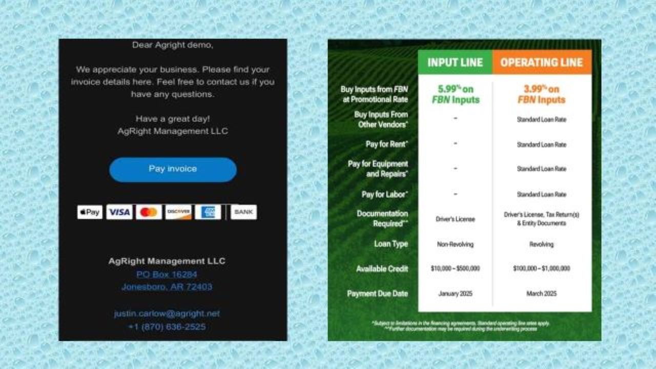Maximize your Return on Investment this season when you become an AgRight.net member. AgRight has partnered with crop protection manufactures to offer unmatched savings and efficacy on all crop protection needs. Not only do we pride ourselves on saving customers money with quality products, we offer superior service with free storage and direct delivery to farms and applicators all over the mid-south. We offer multiple forms of payment terms when purchasing your products. We will customize a plan that works for you and your farm.